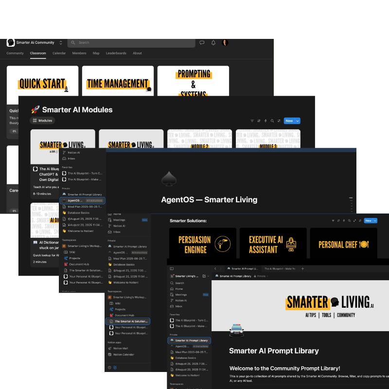 Weekly "AI Implementation" Workshops run by some of the most intelligent humans in Ai. Live tool demos, hands-on prompting workshops, and education around how to use Ai for your unique situation. All live sessions recorded in case you miss it.
